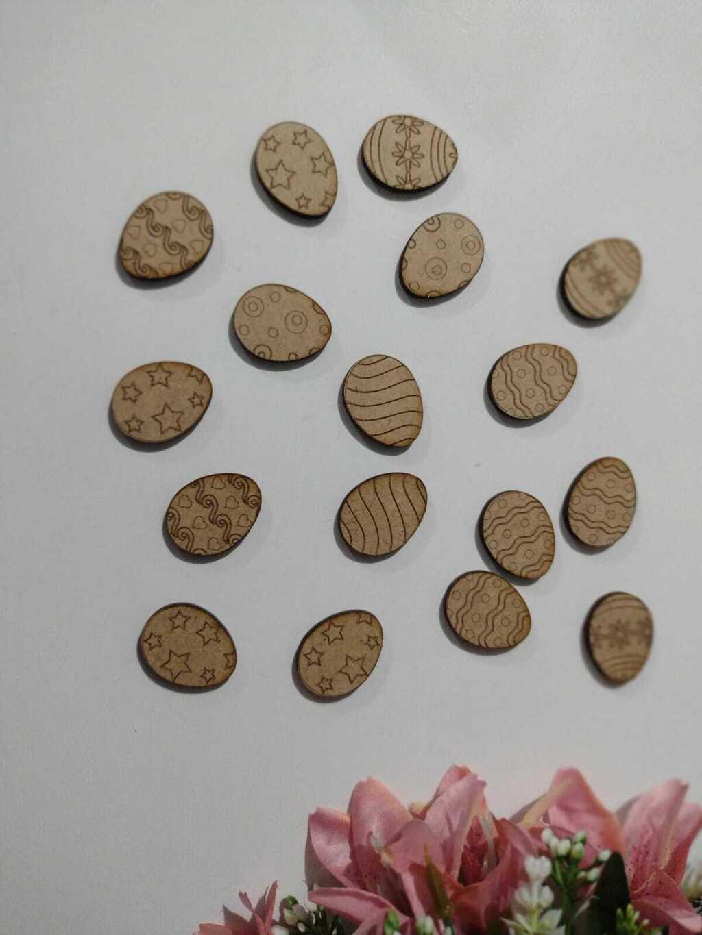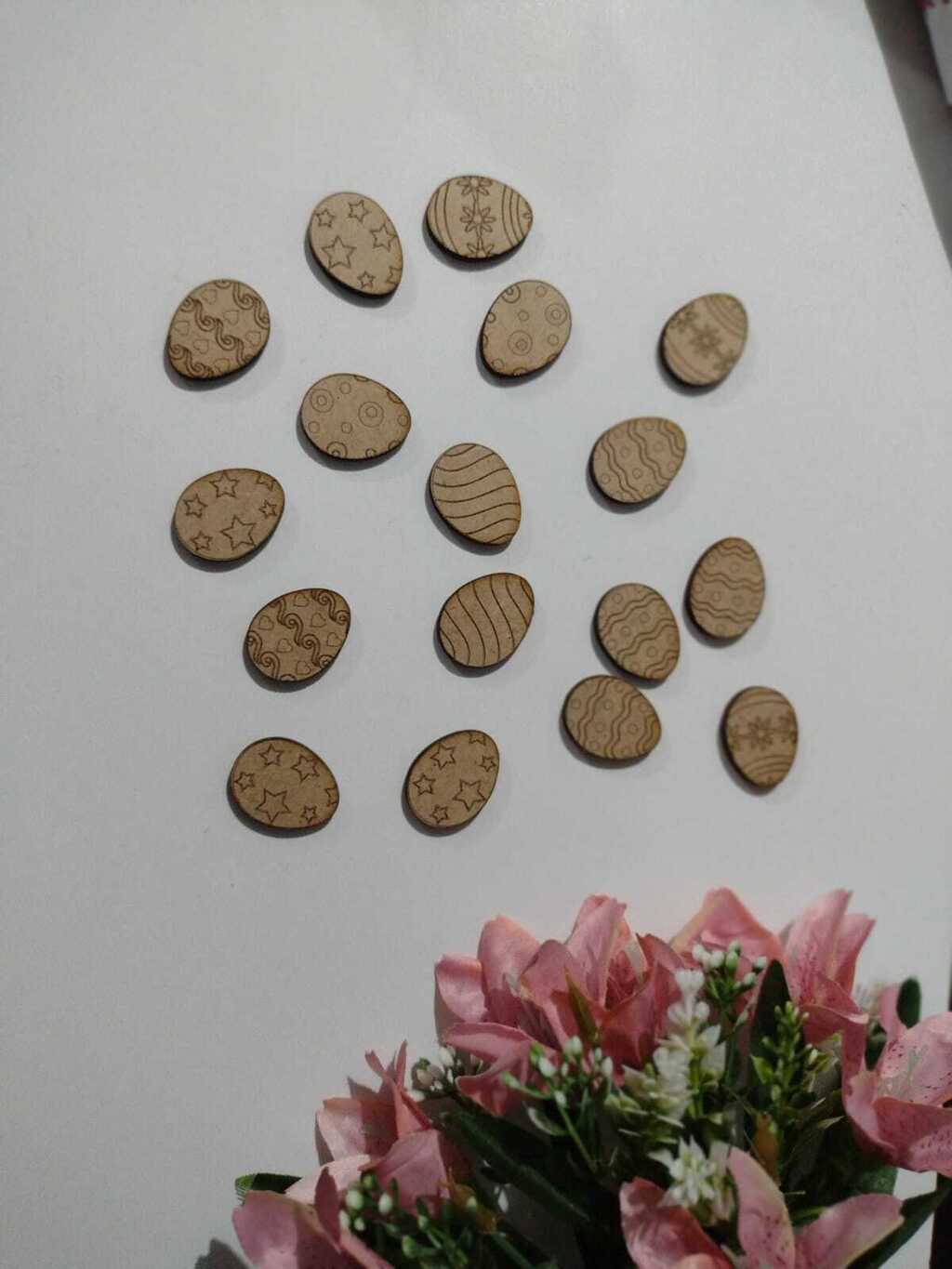 Dê um toque encantador às suas celebrações de Páscoa com os nossos botõezinhos e apliques no formato de ovinhos! Com gravações variadas e um tamanho perfeito de 3cm por 2cm, eles são ideais para personalizar suas decorações e lembrancinhas.